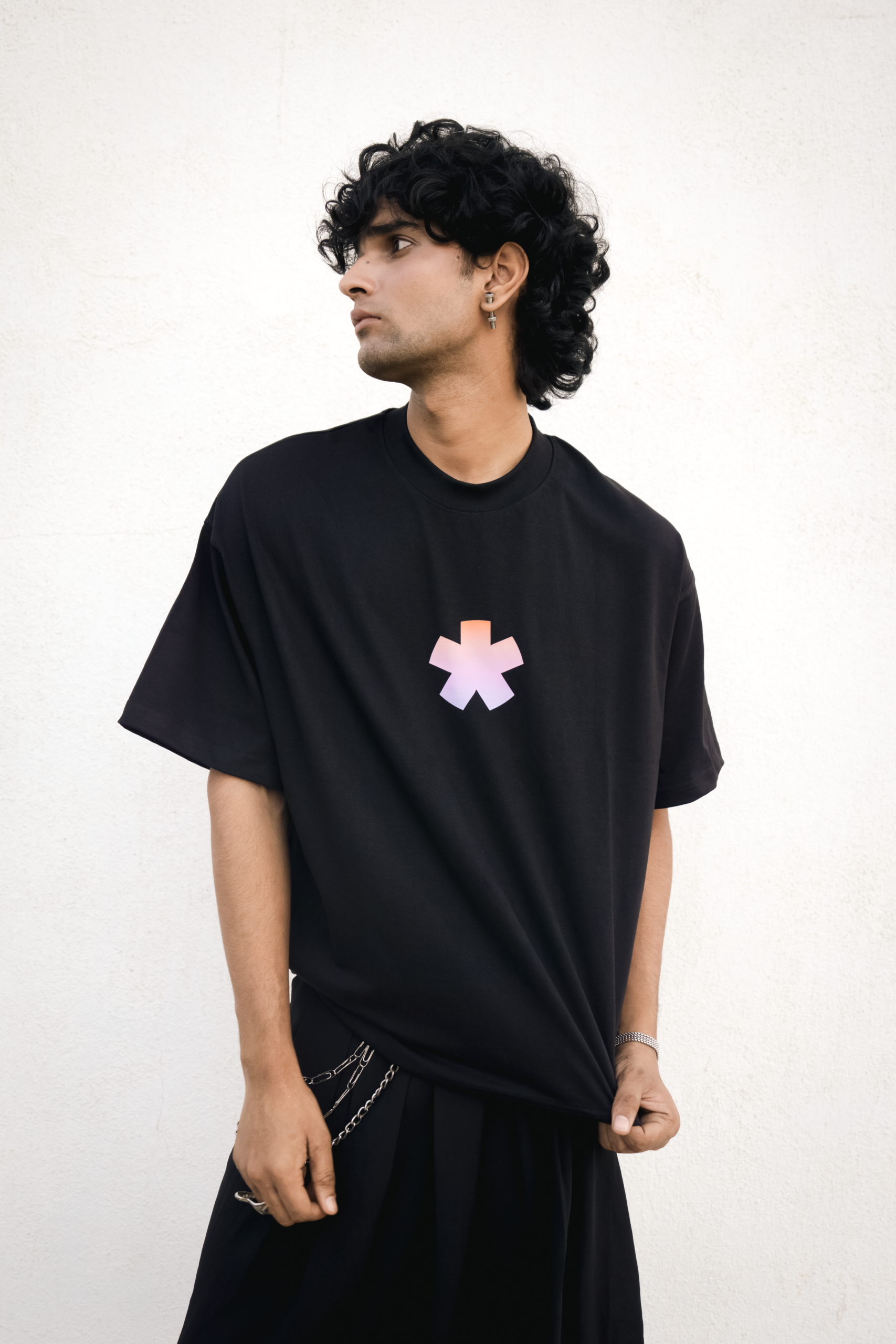 Introducing the mock neck edition of our signature box tee, featuring a sleek gradient logo on the front for a modern twist. Available exclusively in black, it boasts dropped shoulders, a ribbed mock neck, and our signature neck embroidery for that extra touch of detail. Made from premium 320gsm 100% cotton jersey, this piece delivers a bold, structured fit with unmatched comfort. Elevate your look with this limited-release essential.
