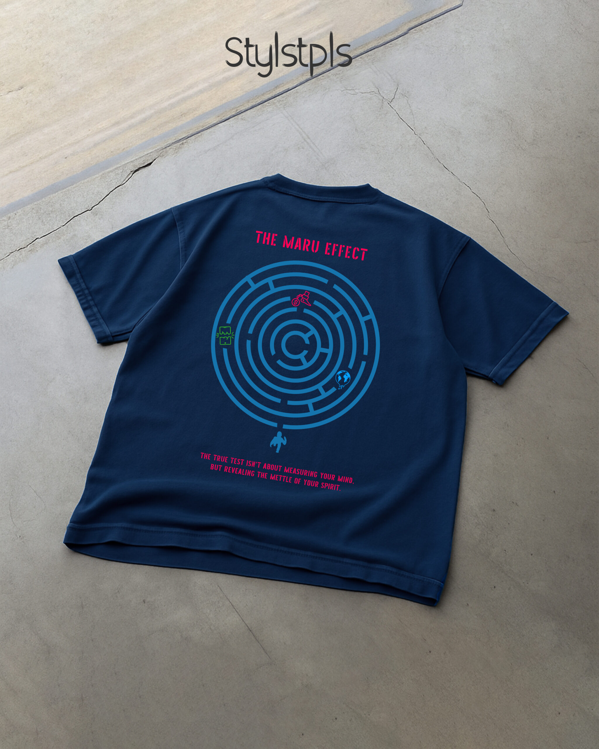 Maru effect – Navy blue, minimalistic print, oversized T-shirt