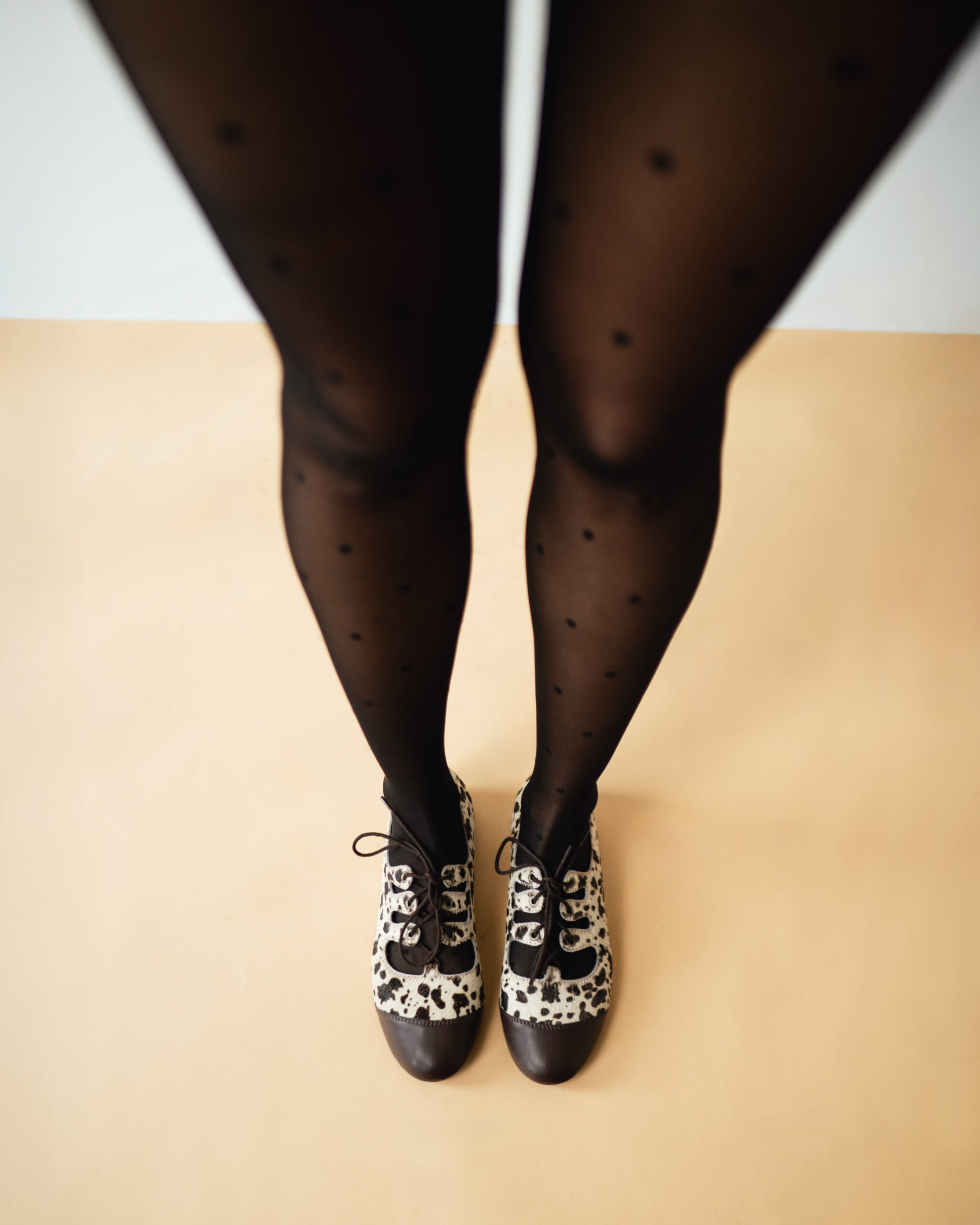 Triple strap lace up ballets made with printed hair on leather, finished with a pink toe cap. Perfect for adding edge to the everyday !