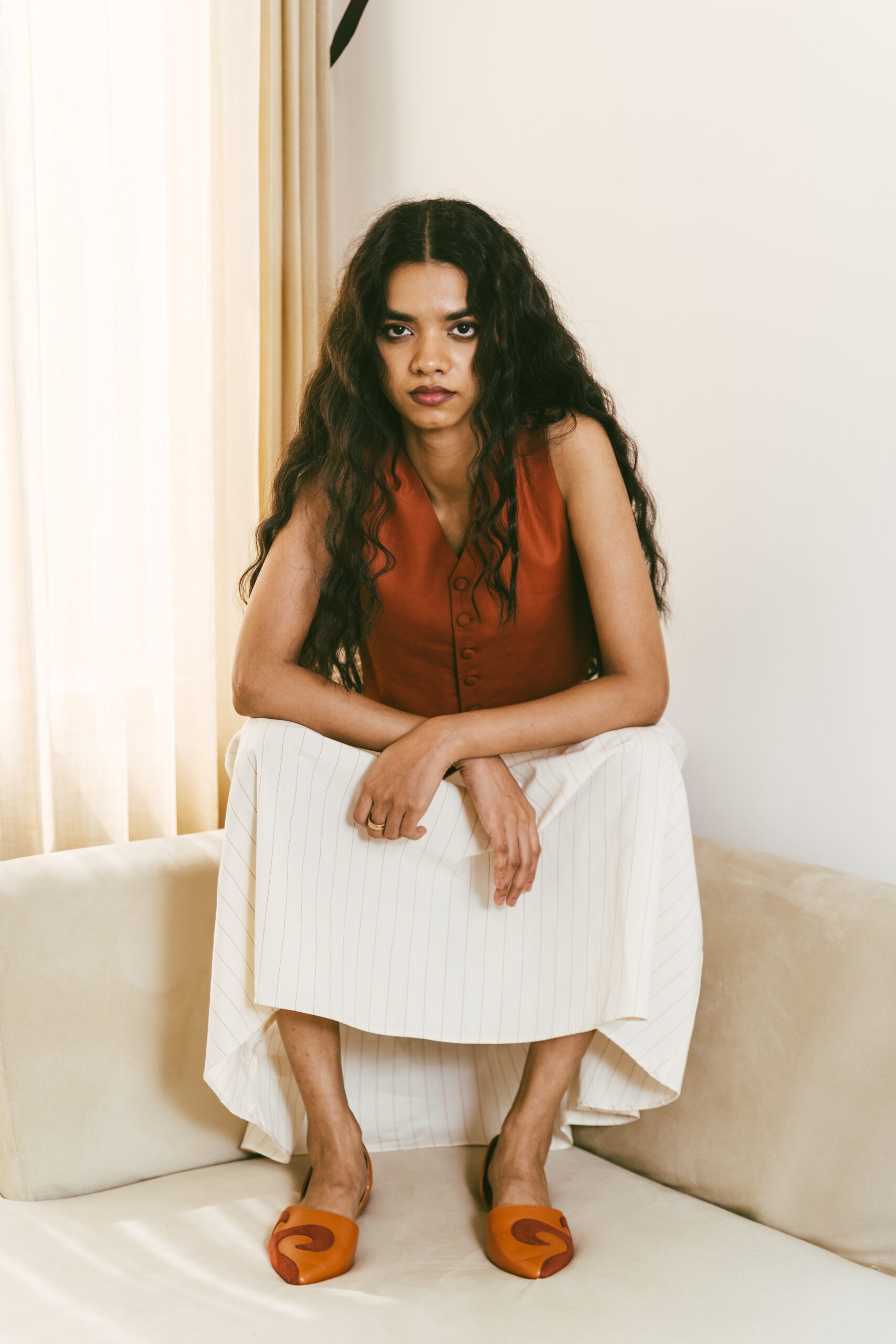 Made in genuine leather with suede swirl accents, this pointed and rusty flat is our take on subtle statements and soft geometry