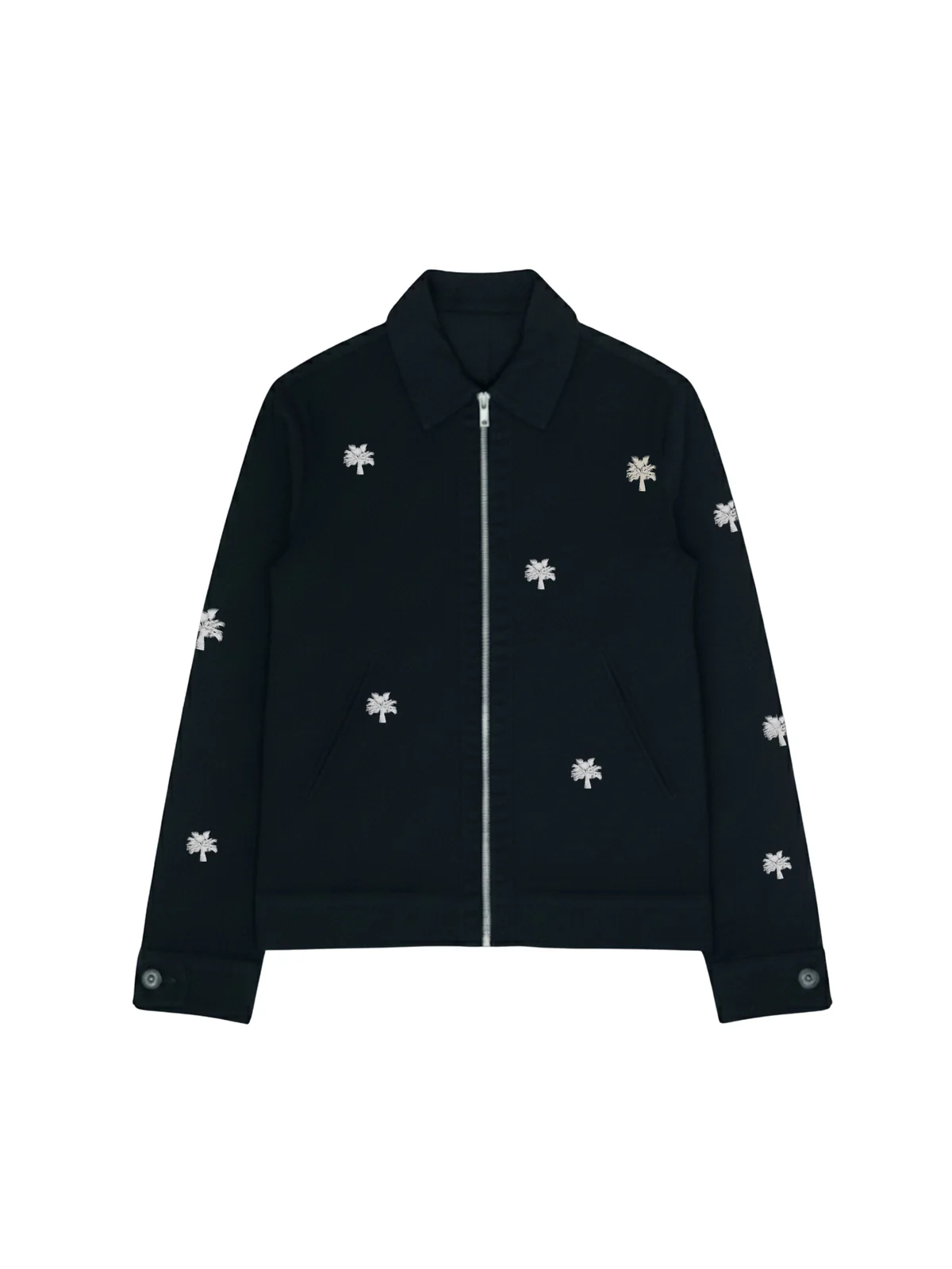 The PALMÉ ZIP JACKET is about calm and subtle strength. Our signature palm tree icons are a quiet nod to growth and memory. Boxy fit and dropped shoulders make it relaxed. Every pocket, zipper, and seam is thoughtful.